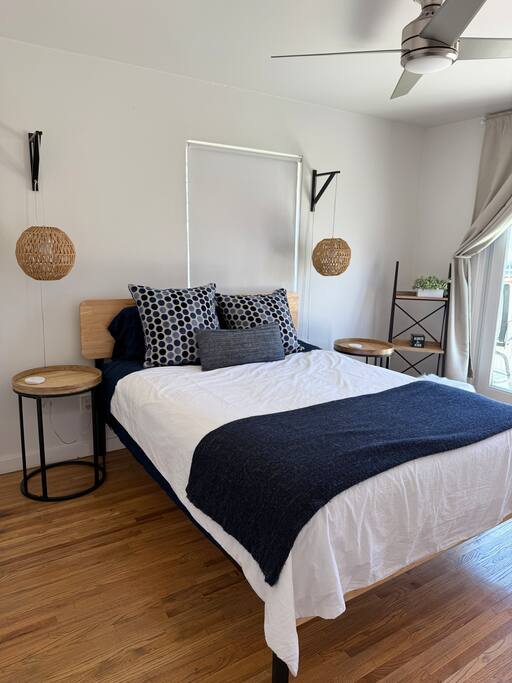 The fourth bedroom is downstairs, furnished with a comfortable memory foam queen mattress and detached bathroom with shower.